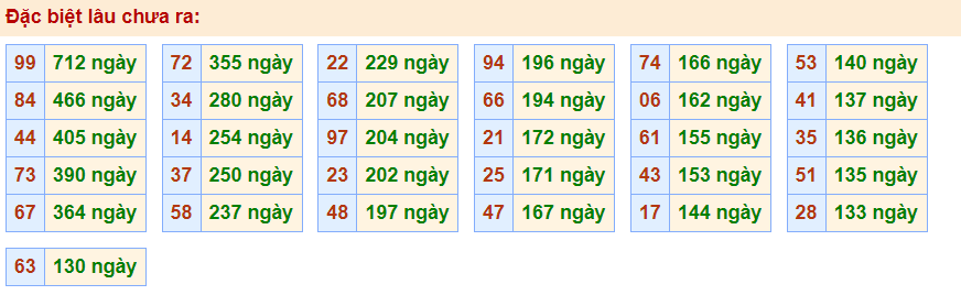 • Cặp 99 với 712 ngày chưa về giải đặc biệt