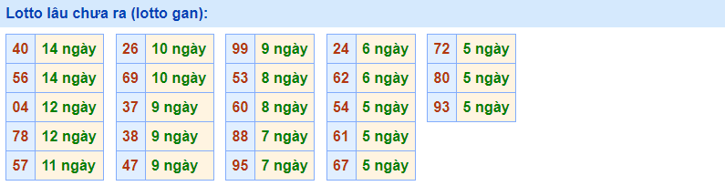 - Cặp 40 với 315 ngày chưa về giải đặc biệt
