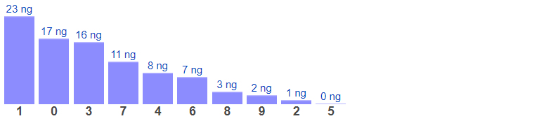 Thống kê cho thấy chạm lâu chưa xuất hiện nhất là chạm 1 (bao gồm 19 cặp số có chứa số 1), đã 17 ngày chưa ra.