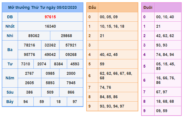 + Cầu Đặc biệt đẹp nhất thứ 5 ngày 6/2/2020: 69,96 – 19,91 – 16,61 – 99 – 79,97 – 49,94 – 59,95 – 56,65 – 06,60 – 68,86