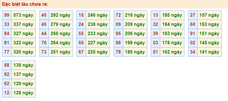 - Cặp 99 với 573 ngày chưa về giải đặc biệt