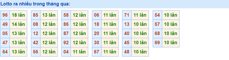 - Cặp 96 với 18 lần về trong tháng qua