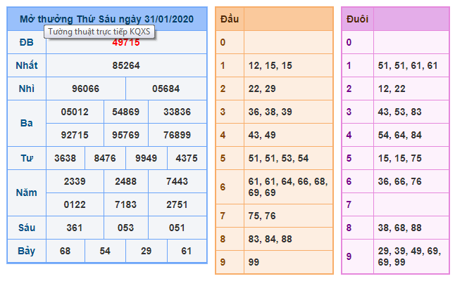 >> XSMB 31/1/2020 <<