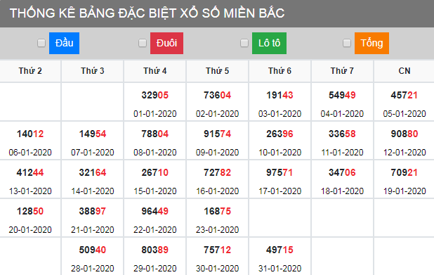 Thống kê đặc biệt tuần XSMB 1/2/2020