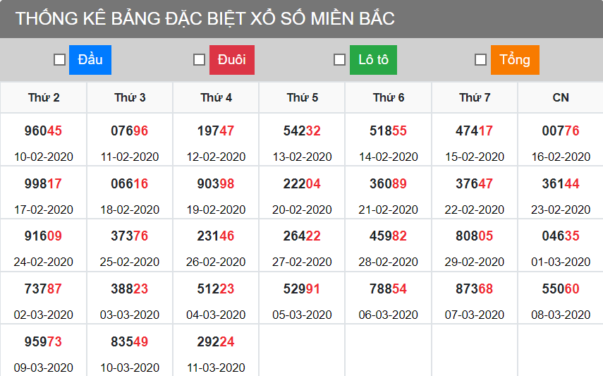 Thống kê đặc biệt tuần XSMB 12/3/2020