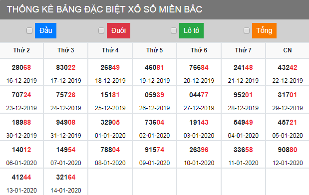 Thống kê đặc biệt tuần XSMB 15/1/2020