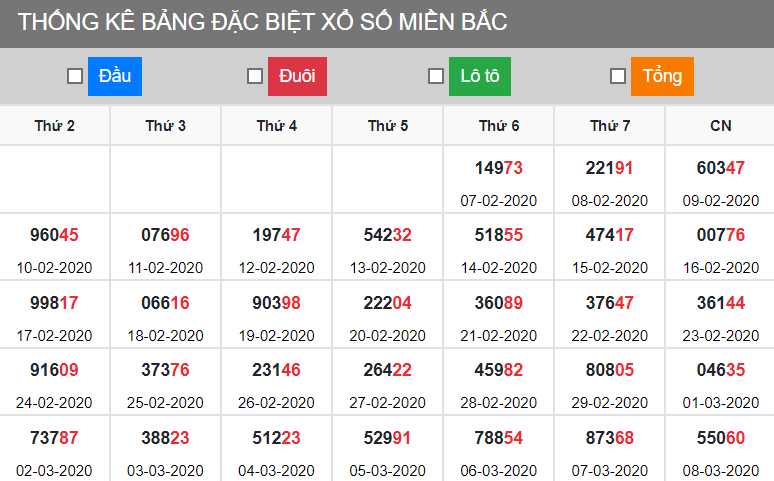 Thống kê đặc biệt tuần XSMB 15/3/2020
