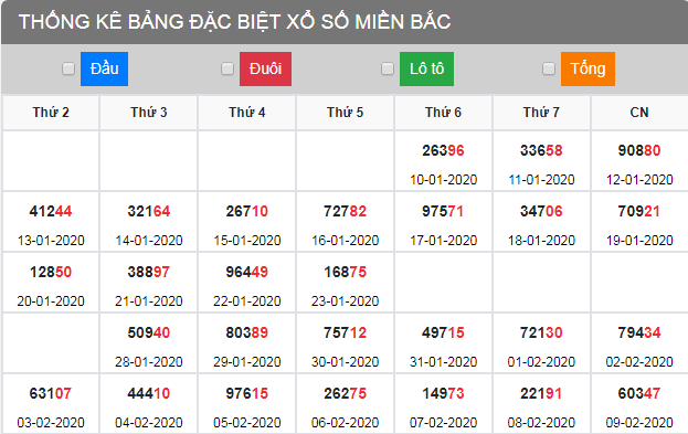 Thống kê đặc biệt tuần XSMB 16/2/2020