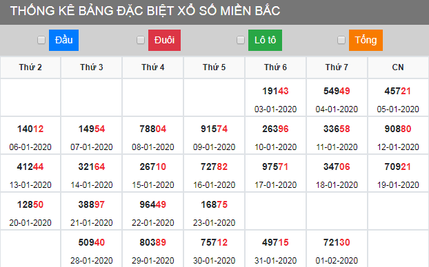 Thống kê đặc biệt tuần XSMB 2/2/2020