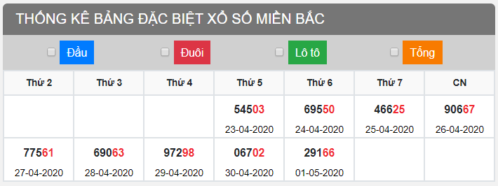Thống kê đặc biệt tuần XSMB 2/5/2020
