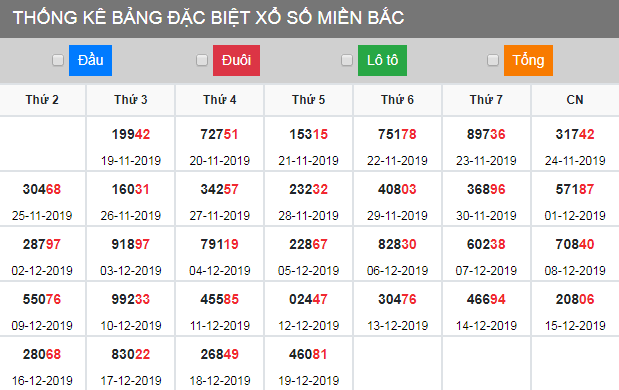 Thống kê đặc biệt tuần XSMB 20/12/2019