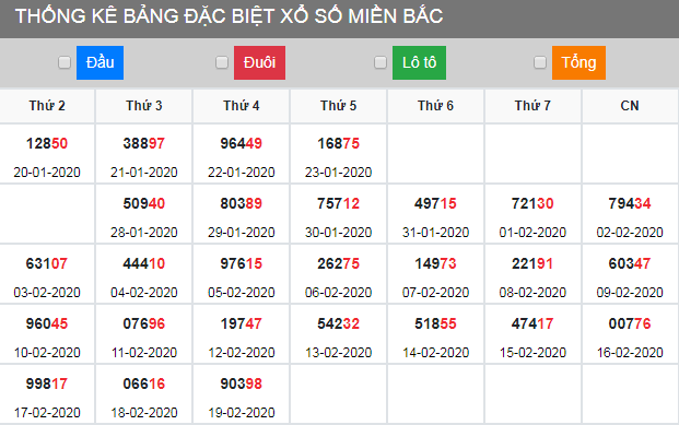 Thống kê đặc biệt tuần XSMB 20/2/2020