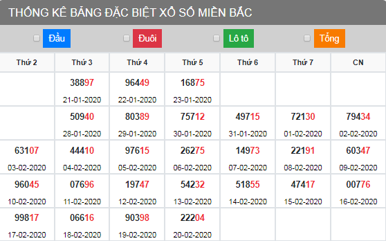 Thống kê đặc biệt tuần XSMB 21/2/2020