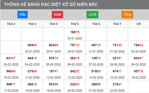 Thống kê đặc biệt tuần XSMB 23/2/2020