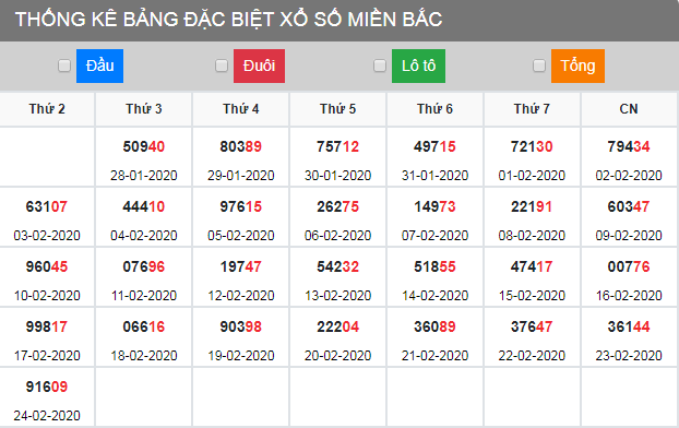 Thống kê đặc biệt tuần XSMB 25/2/2020
