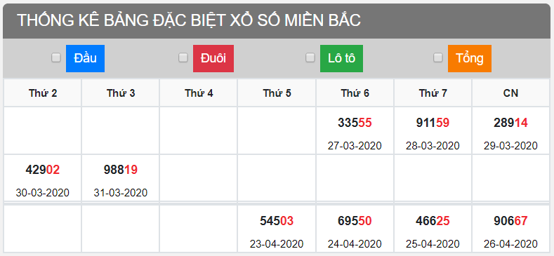 Thống kê đặc biệt tuần XSMB 27/4/2020