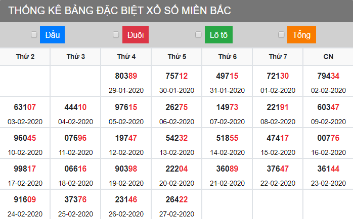Thống kê đặc biệt tuần XSMB 28/2/2020