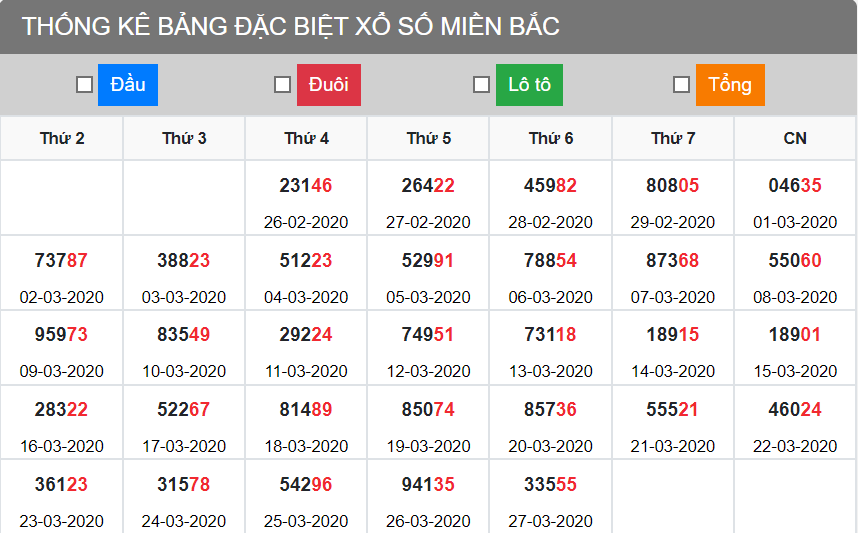 Thống kê đặc biệt tuần XSMB 28/3/2020