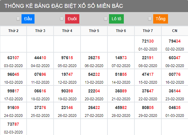 Thống kê đặc biệt tuần XSMB 3/3/2020