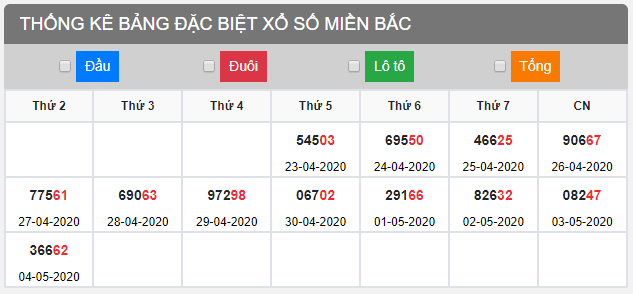 Thống kê đặc biệt tuần XSMB 5/5/2020