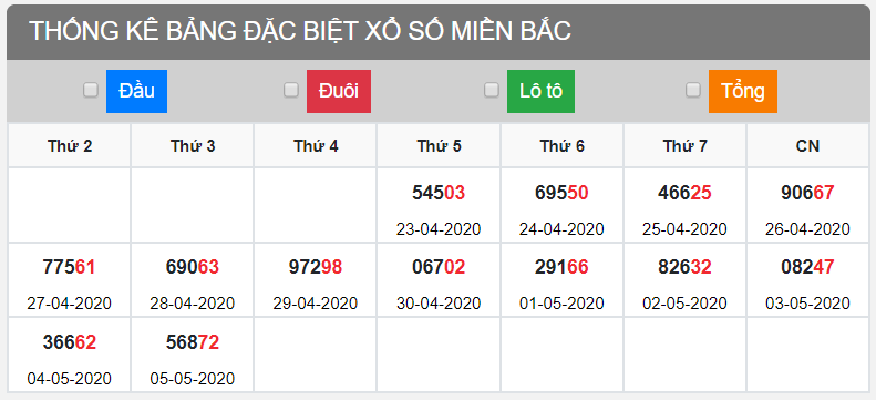 Thống kê đặc biệt tuần XSMB 6/5/2020