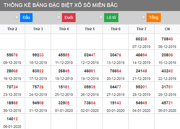 Thống kê đặc biệt tuần XSMB 7/1/2020