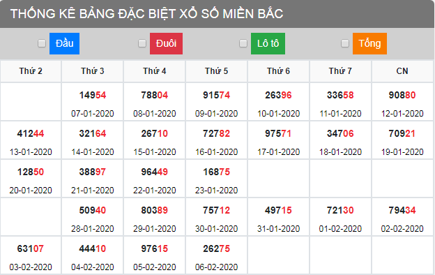 Thống kê đặc biệt tuần XSMB 7/2/2020