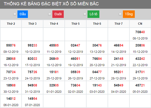 Thống kê đặc biệt tuần XSMB 8/1/2020
