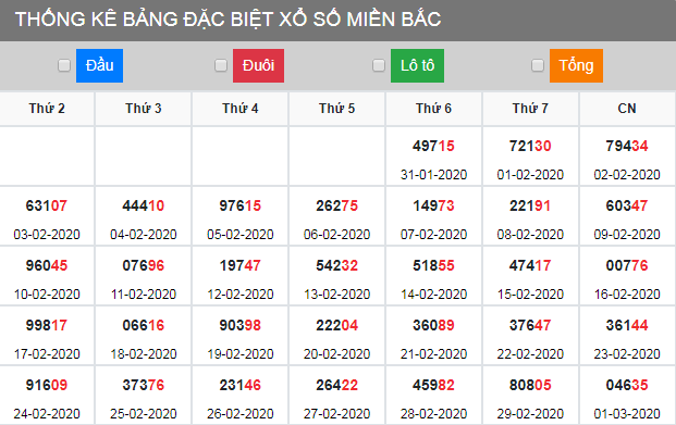 Thống kê đặc biệt tuần XSMB 2/3/2020
