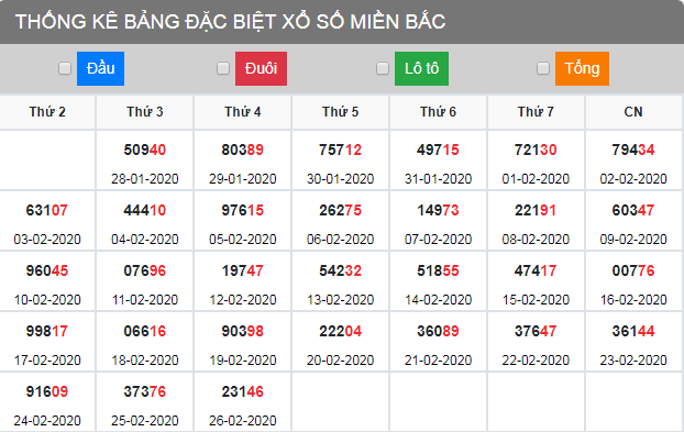 Thống kê đặc biệt tuần XSMB 27/2/2020