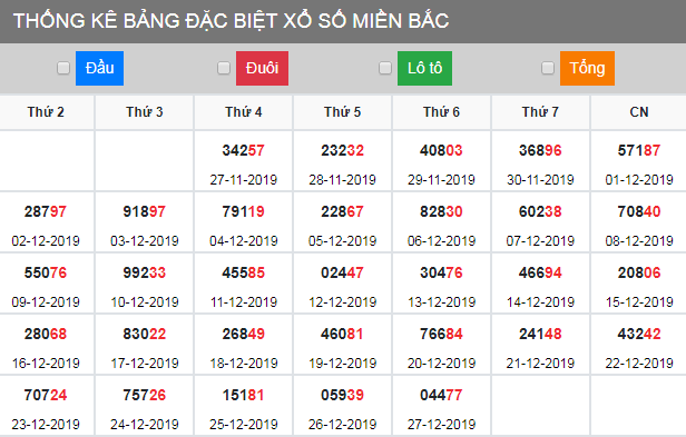 Thống kê đặc biệt tuần XSMB 28/12/2019