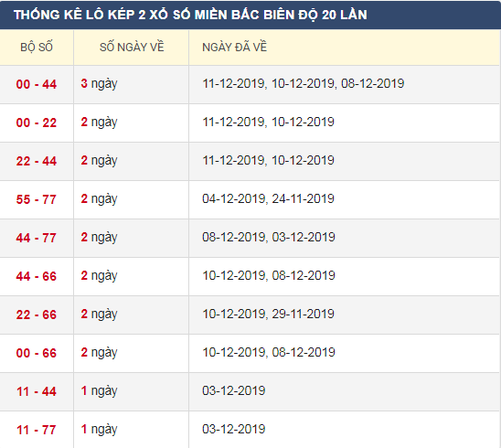 Bảng soi cầu lô kép XSMB 15/12/2019