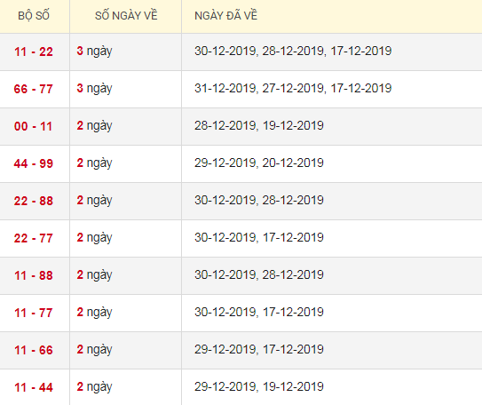 Thống kê lô tô kép XSMB 2/1/2020