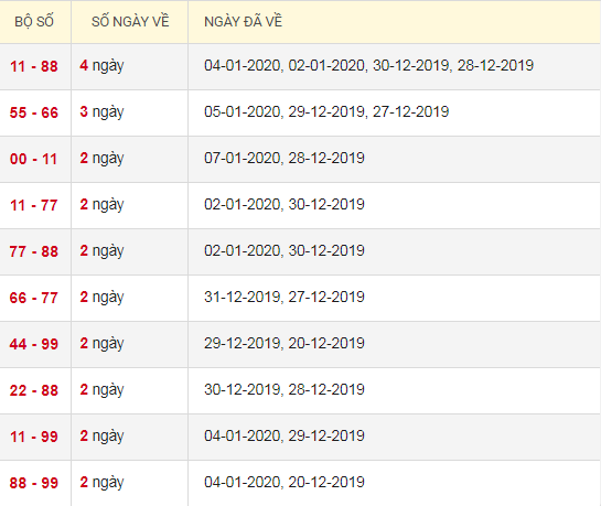 Bảng thống kê lô tô kép XSMB 30 lần quay gần đây