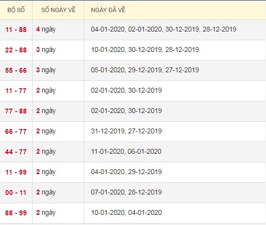 Bảng thống kê lô tô kép XSMB 30 lần quay gần đây
