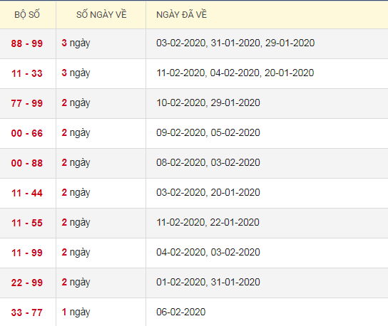 Bảng thống kê lô tô kép XSMB 30 lần quay gần đây