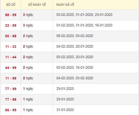 Bảng thống kê lô tô kép XSMB 30 lần quay gần đây