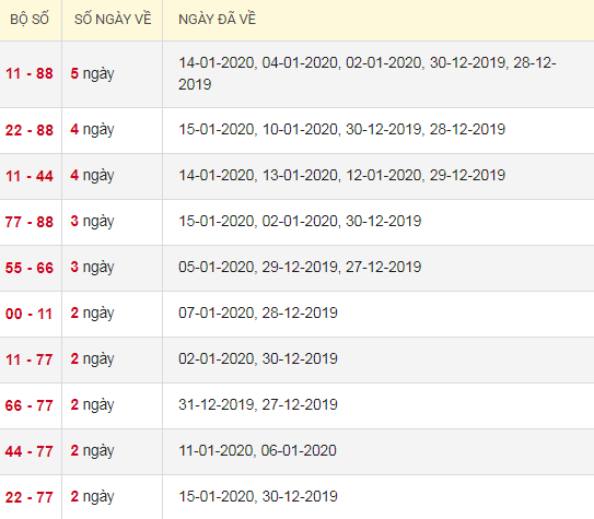 Bảng thống kê lô tô kép XSMB 30 lần quay gần đây