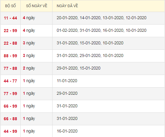 Bảng thống kê lô tô kép XSMB 30 lần quay gần đây