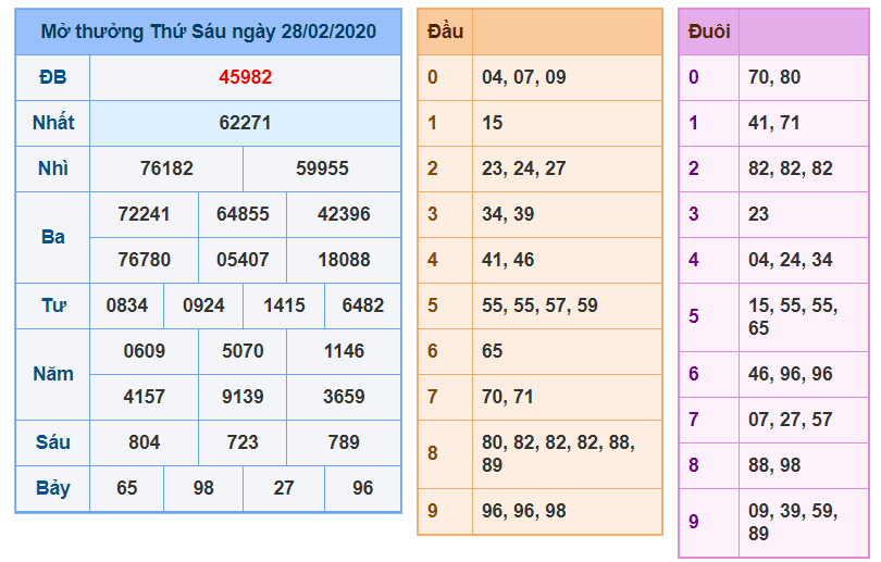 | 55 – 99 | 2 ngày | 20-02-2020, 14-02-2020 |