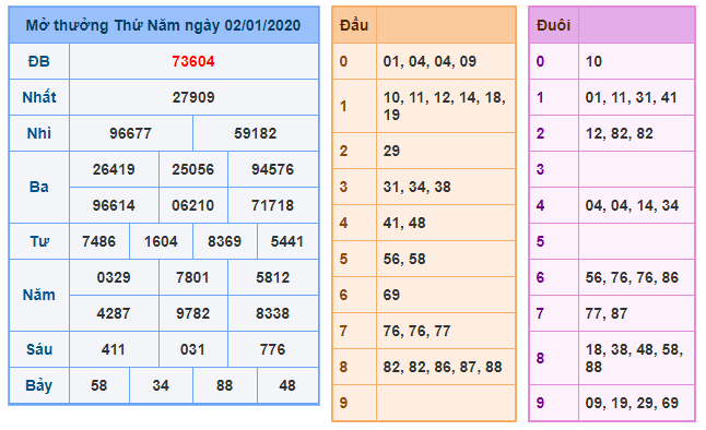 Xem lại kết quả XSMB 2/1/2020