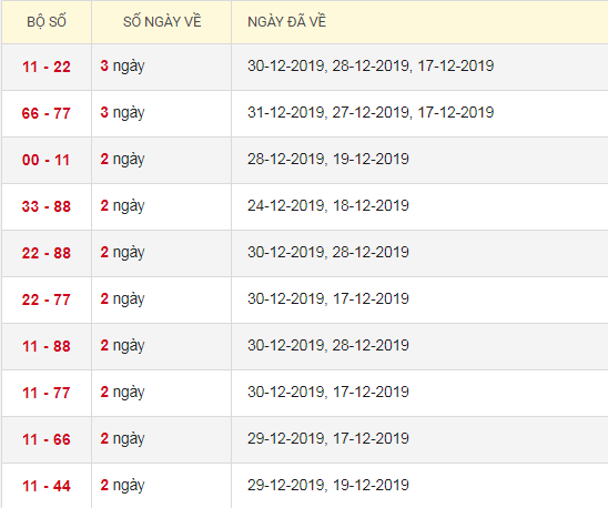 Thống kê lô tô kép XSMB 3/1/2020