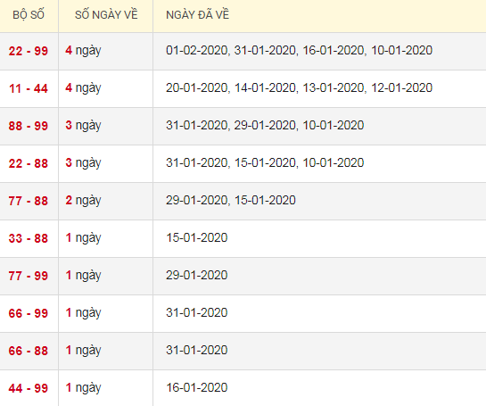 Thống kê lô tô kép XSMB 4/2/2020