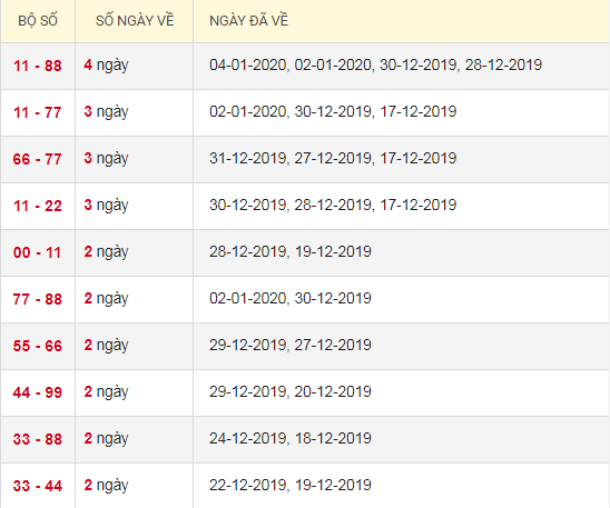 Bảng thống kê lô tô kép XSMB 30 lần quay gần đây