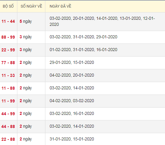 Bảng thống kê lô tô kép XSMB 30 lần quay gần đây