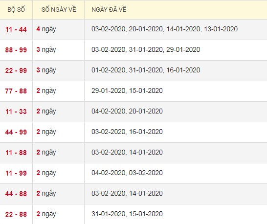 Bảng thống kê lô tô kép XSMB 30 lần quay gần đây