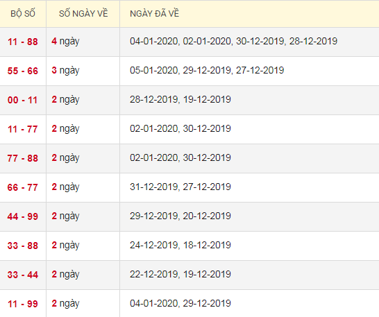 Thống kê lô tô kép XSMB 8/1/2020
