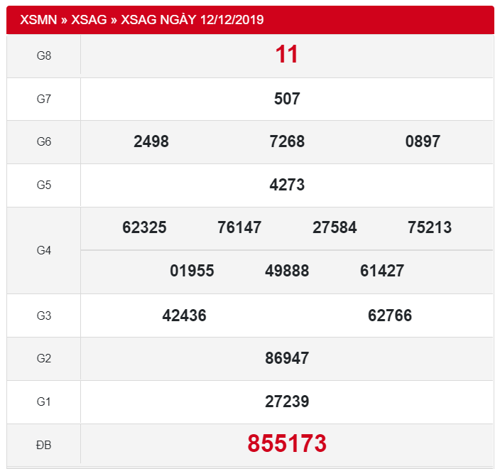 Soi cầu 3 miền XSAG thứ 5 ngày 19/12/2019 mang tới anh em gợi ý các cặp số đẹp nhất của Giải 8, Giải ĐB, lô tô 2 số và lô tô 3 số. Mời anh em tham khảo và lựa chọn!
