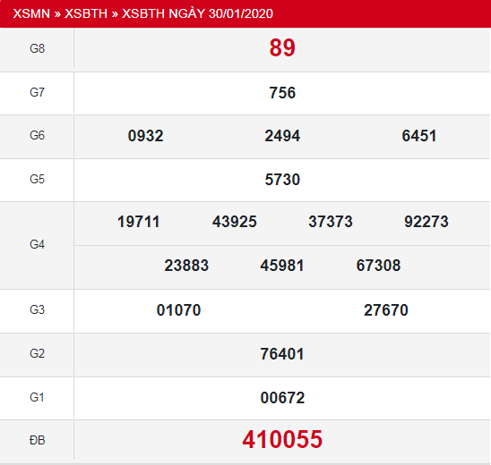 Soi cầu 3 miền XSBTH thứ 5 ngày 6/2/2020 mang tới anh em gợi ý các cặp số đẹp nhất của Giải 8, Giải ĐB, lô tô 2 số và lô tô 3 số. Mời anh em tham khảo và lựa chọn!