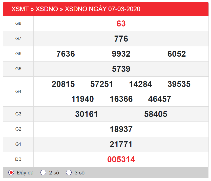 Thống kê Đặc Biệt XSDNO 14/3/2020